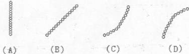 18、如图所示,一油罐车在车的尾部有一条金属链条,以防止静电。当油罐车沿水平方向做匀加速直线运动时,金属链条的尾端离开了地面,若链条很细,各环节之问的摩擦不计,且链条质量不是均匀分布的(越往下越细),则在油罐车沿水平面做匀加速直线运动时(在下图中,链条上端连在尾端,汽车向右运动),链条的形态是下列哪一种。