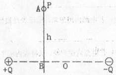 ,今将一带电小环P从A点由静止释放,小环到达B点的迷度大小为v,则: