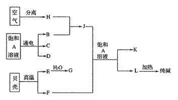 (4)将F和J通入A的饱合溶液中的顺序为 。