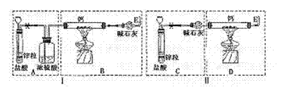 已知:碱金属或碱土金属(Ⅱ族)与H2在隔绝空气加热时要以发生反应,生成离子型金属氢化物,如NaH、CaH2等,它们易与水反应。现有甲、乙两位同学分别设计了制备CaH2的实验,装置如图所示(分别以序号Ⅰ、Ⅱ表示),铁架台等夹持固定仪器已略去。