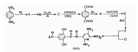 M5纤维是美国开发的一种超性能纤维,下面是M5纤维的合成路线(有些应未注明条件):