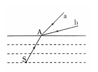 如图所示,水下光源S向水面A点发射一束光线,折射光线分成a、b两束,则( )