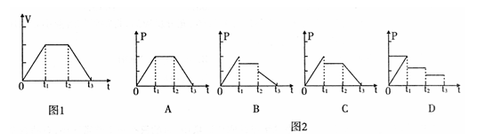起重机的钢索将重物由地面吊到空中某个高度,其速度图像如下图1所示,则钢索拉力的功率随时间变化的图像是下图2中的 ( )