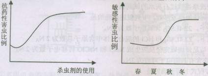 4.科技工作者研究农业害虫与环境的关系(图中抗药性和敏感性都是针对杀虫剂而言),绘制了如图所示两个坐标曲线,曲线不能说明的是