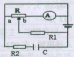 如图所示。电源内阻不能忽略,安培表是理想电表.当滑动变阻器R的滑动头从a端