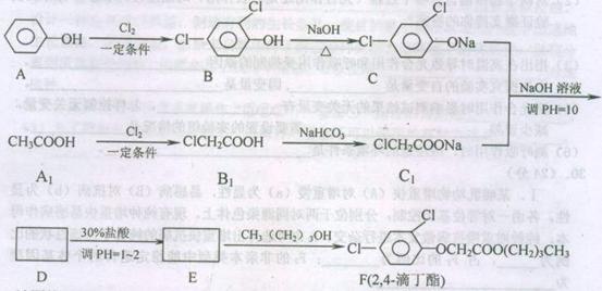2,4-滴丁酯是一种除草剂。它的工业合成路线如下: