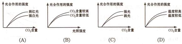 2.下面各图表示在一定范围内,不同环境因素与水稻叶片光合作用强度的关系,其中错误的是 ( )