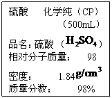 8.右图是某学校实验室从化学试剂商店买回的硫酸试剂标签上