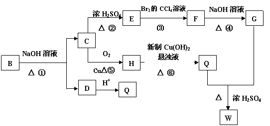 G和Q以1:2的比例,在有浓硫酸存在并加热的条件下反应生成W。