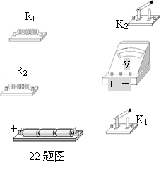 (Ⅱ)(14分)为了测量直流电源的电动势E及内阻r(E约为4.2V,r约为2Ω),所提供器材有:量程为3V的电压表V,其内阻较大,固定电阻R1=20Ω,固定电阻R2=4Ω,开关K1和K2,导线若干,如图所示: