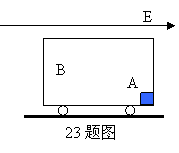 23、(16分)如图,带正电q=0.8C的车厢B,长为L=8m,质量mB=20kg,车厢内的右壁处放一可视为质点的绝缘的质量mA也为20kg的小物块A,当车厢所在的运动空间加一个水平向右的,场强E=102N/C的匀强电场时,车厢由静止开始运动,测得车厢B在最初2.0s内移动的距离S=5m,且在这段时间内A未与B发生过碰撞,假设车厢与绝缘地面无摩擦,A与车厢壁的碰撞为完全弹性碰撞,碰撞时间不计,且碰后速度交换,A在B内运动时B的电量始终不变。求: