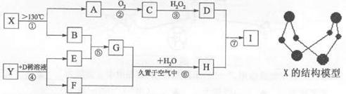 26.(12分)已知A、B、E是常见的非金属单质,其中A为淡黄色固体,Y是常见的金属单质,C的相对分子质量比A大32,D、G均是重要的工业产品,Y、F、H、I均含有同种元素。X含有两种元素,具有摇篮形的分子结构,球棍模型如图所示。H为红褐色沉淀。图中部分反应条件和产物已略去。
