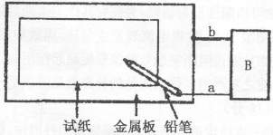(2)如果试纸为红色石蕊试纸,金属板为锌片,B处为灵敏电流计,接通电路,将铅笔芯放置在试纸上一段时间,发现电流计指针发生偏转,则接触处将_________ (填“变