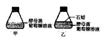 5. 某同学为了研究酵母菌呼吸作用的特点,制作了如图实验装置。甲、乙中加等量的经煮沸后冷却的葡萄糖溶液,并加等量的酵母菌,乙内用液体石蜡隔绝空气。对该实验分析,正确的是 ( )