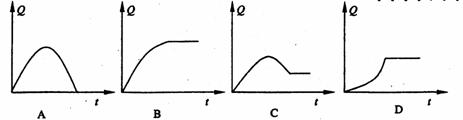 20、如图所示,有缺口的金属圆环与板间距为d的平行板电容器的两极板焊接在一起,金属环右侧有一垂直纸面向外的匀强磁场,现使金属环以恒定不变的速率v向右运动由磁场外进入磁场,在金属环进入磁场的过程中,电容器带电量Q随时间t变化的关系图是( )