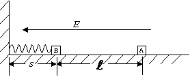 处放置一个不带电、质量M=4.0×10-3kg的绝缘滑块B,B的左端接触(不连接)于固定在竖直墙壁的轻弹簧上,轻弹簧处于自然状态,弹簧原长s=0.05m,如图所示。在水平方向加一水平向左的匀强电场,电场强度的大小为E=4.0×105N/C,滑块A由静止释放后向左滑动并与滑块B发生碰撞,设碰撞时间极短,碰撞后结合在一起共同运动的速度为v=1m/s,两物体一起压缩弹簧至最短处(弹性限度内)时,弹簧的弹性势能E0=3.2×10-3J。设两滑块体积大小不计,与水平面间的动摩擦因数为μ=0.50,摩擦不起电,碰撞不失电,g取10m/s2。求: