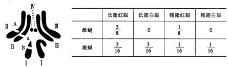 30、(20分)果蝇的长翅(A)对残翅(a)是显性,红眼(B)对白眼(b)是显性。左下图为某果蝇的染色体及基因组成,右下表为该果蝇与“另一亲本”杂交后代的表现型及比例,分析回答: