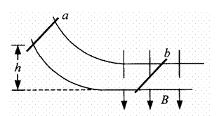 25.(20分)如图所示,金属棒a从高为h处由静止沿光滑的弧形导轨下滑进入光滑导轨的水平部分,导轨的水平部分处于竖直向下的匀强磁场中。在水平部分原先静止有另一根金属棒b,已知ma=2m,mb=m,整个水平导轨足够长,并处于广阔的匀强磁场中,假设金属棒a始终没跟金属棒b相碰,重力加速度为g。求: