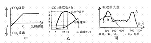 (3)丙图中曲线A、B分别表示叶绿体中的两类色素,其中曲线A表示的色素是 。