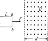 边长为L的正方形金属框在水平恒力F作用下运动,穿过方向如图所示的有界匀强磁场区域,磁场区域的宽度为d(d>L). 已知ab边进入磁场时,线框的加速度恰好为零,则线框进入磁场的过程和从磁场另一侧穿出的过程相比较,有(