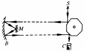 如图所示是物理学家迈克耳孙测定光速的实验示意图.八面镜静止不动时,望远镜C中可见光源S的像,现在使八面镜开始转动,并且使转速逐渐增大到每秒n转时,在望远镜C中又可看到光源S的像,如果测得入面镜与凹镜之间的距离是L,凹镜与平面镜之间的距离可以忽略,则测得的光速是( )