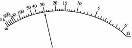① 首先,用多用电表进行粗测∶多用电表电阻挡有4个倍率,分别是×1kΩ、×100Ω、×10Ω、×1Ω. 该同学选择×10Ω倍率,用正确的操作方法测量,发现指针偏角太小(接近左端). 为了较准确地进行测量,他又将选择开关拨到了与×10Ω邻近的倍率上,若这时刻度盘上的指针位置如图所示,那么测量结果是 _______ Ω.