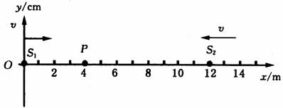 21.如图所示,均匀介质中两波源S1、S2分别位于x轴上x1=0、x2 =12m处,质点P位于x轴上x p =4m处。t=0时刻两波源同时开始由平衡位置向y轴正方向振动,振动周期均为T=0.l s,传播速度均为v=40m/s,波源S1和S2的振幅分别为A1= 2cm和A2= l cm。则在t=0至t=0.3s内质点P通过的路程为( )