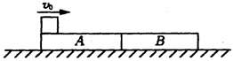 (20分)如图所示,在光滑桌面上放着两个完全相同的木板A和B,它们靠拢但并不相连,长度皆为l=1.0m,在木板A的左上端放一可视为质点的小金属块,它的质量和木板的质量相等,金属块与木板间的动摩擦因数μ= 0. 10,最初它们是静止的。现让小金属块以V0 =2.0m/s的初速度开始向右滑动,取 g= l0m/s2,求: