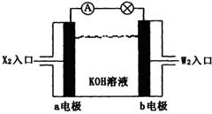 (2)将X2、W2按上图所示通入某燃料电池中,其中,b电极的电极反应式为 。若有16gW2参加反应,转移的电子数是 NA。