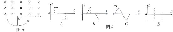 匀速转动.设线框中感应电流方向以逆时针方向为正,那么在图b中能正确描述线框从图a中所示位置开始转动一周的过程中,线框内感应电流随时间变化情况是图b中的哪一个?
