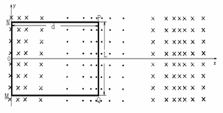 平面指向纸里。与轨道平面平行的一金属矩形框MNPQ处在该磁场中,已知该金属框的MN边与轨道垂直,长度为L,固定在y轴上,MQ边与轨道平行,长度为d=