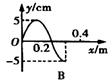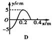 一质点以坐标系原点O为平衡位置沿y轴方向做简谐振动,其振动图像如右图所示,振动形成的简谐横波在介质中沿x轴正向传播,波速为1.0m/s,若质点振动四分之三周期后立即停止,则再经过0.1s后的波形图是( )