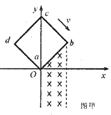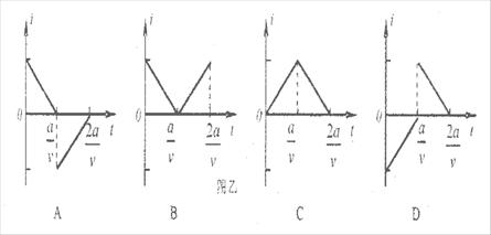 20.如图甲所示,在坐标系xoy中,有边长为a的正方形金属线框abcd,其一条对角线ac和y轴重合、顶点a位于坐标原点O处.在y轴的右侧的I、IV象限内有一垂直纸面向里的匀强磁场,磁场的上边界与线框的ab边刚好重合,左边界与y轴重合,右边界与y轴平行.T=0时刻,线圈以恒定的速度v沿垂直于磁场上边界的方向穿过磁场区域.取沿a→b→c→d→a的感应电流方向为正,则在线圈穿越磁场区域的过程中,感应电流i随时间t变化的图线是 图乙中的
