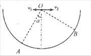 (16分)如图所示,在竖直放置的半圆形容器的中心O点分别以水平速度v1、v2抛出两个小球(可视为质点),最终它们分别落在圆弧上的A点和B点,已知OA与OB相互垂直且 OA与竖直方向成α角,求两小球初速度之比v1∶v2。
