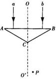 如图所示,△ABC为等腰三角形,a、b两束不同频率的单色光垂直于ab边从关于OO’对称的位置射入棱镜,折射后两束光相交于图中的P点,以下判断正确的是: