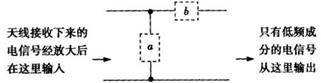 19. 在收音机电路中天线接收下来的电信号既有高频成分又有低频成分,经放大后送到下一级,需要把高频成分和低频成分分开,只让低频成分输入下一级,如果采用如图所示的电路,图中虚线框a和b内只用一个电容器或电感器,那么