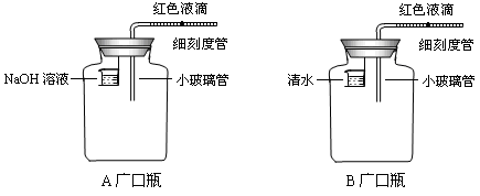 步骤三:将A、B两组小鼠分别放入A、B两瓶中,待小鼠安静后塞紧胶塞,一段时间后记录两装置中液滴的移动情况。