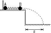 质量相等的A、B两球之间压缩一根轻弹簧,静置于光滑水平桌面上。当用板挡住小球A而只释放B球时,B球被弹出落于距桌边距离为s的水平地面上,如图所示。问当用同样的程度压缩弹簧,取走A左边的挡板,将A、B同时释放,B球的落地点距桌边距离