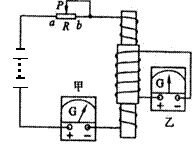 (1)(6分) 研究电磁感应现象的实验中,采用了如图所示的装置,当滑动变阻器R的滑片P不动时,甲、乙两个相同的电流表指针的位置如图所示,当滑片P较快地向a滑动时,两表指针的偏转方向是( )