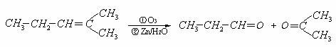 烯烃通过臭氧化并经锌和水处理得到醛或酮。例如:
