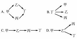 3. 右图表示某生态系统中,四种生物所同化的有机物的量占该生态系统有机物总量的比例,则这四种生物之间的食物关系最可能的是
