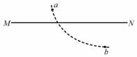 如图所示,MN是一正点电荷产生的电场中的一条电场线。一个带负电的粒子(不计重力)从a到b穿越这条电场线的轨迹如图中虚线所示。下列结论正确的是
