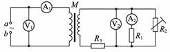 20. 如图所示,M是一小型理想变压器,接线柱a、b接在电压u=311sin314t(V)的正弦交流电源上,变压器右侧部分为一火警报警系统原理图,其中R2为用半导体热敏材料制成的传感器,电流表A2为值班室的显示器,显示通过R1的电流,电压表V2显示加在报警器上的电压(报警器未画出),R3为一定值电阻。当传感器R2所在处出现火警时(R2阻值变小),以下说法中正确的是