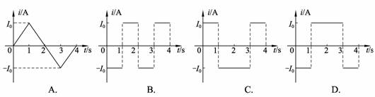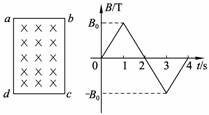 矩形导线框abcd固定在匀强磁场中,磁感线的方向与导线框所在平面垂直,规定磁场的正方向垂直纸面向里,磁感应强度B随时间变化的规律如图所示。若规定顺时针方向为感应电流I的正方向,下列各图中正确的是