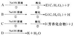 。实验表明:化合物A、B、C和D均是一取代芳香化合物,其中A、C和D的苯环侧链上只含一个官能团。4个化合物在碱性条件下可以进行如下反应,且A、B、C的第二步反应酸化后均生成两种有机物。