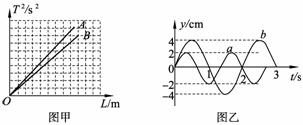 (1) 有两个同学利用假期分别去参观北大和南大的物理实验室,各自在那里利用先进的DIS系统较准确地探究了“单摆的周期T与摆长L的关系”,他们通过校园网交换实验数据,并由计算机绘制了T2-L图象,如图甲所示. 去北大的同学所测实验结果对应的图线是 (选填“A”或“B”)。 另外,在南大做探究的同学还利用计算机绘制了两种单摆的振动图象(如图乙),由图可知,两单摆摆长之比La/Lb= 。