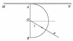 ,直径AB与屏幕垂直并接触于A点。激光a以入射角i=30°射向半圆玻璃砖的圆心O,结果在水平屏幕MN上出现两个光斑。求两个光斑之间的距离L。