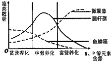 鱼鳞藻、脆杆藻是鱼类的饵料,微囊藻会产生有毒物质污染水体。某研究性学习小组调查了当地部分湖泊营养化程度对藻类种群数量的影响,结果如图所示。下列有关说法中,不正确的是