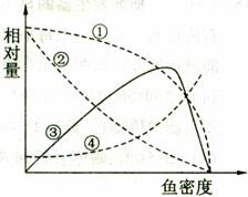 5.右图表示当鱼的密度上升时,鱼产量、个体生长速率、未利用食物量和寻找食物的能耗的变化。曲线③表示总的鱼产量,则个体生长速率、未利用的食物量、每条鱼寻找食物的能耗分别对应的曲线是
