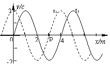 如图所示一列横波在t1和t2时刻的波形分别如图中的实线和虚线所示,已知波在介质中的传播速度是2m/s。下述结论正确的是